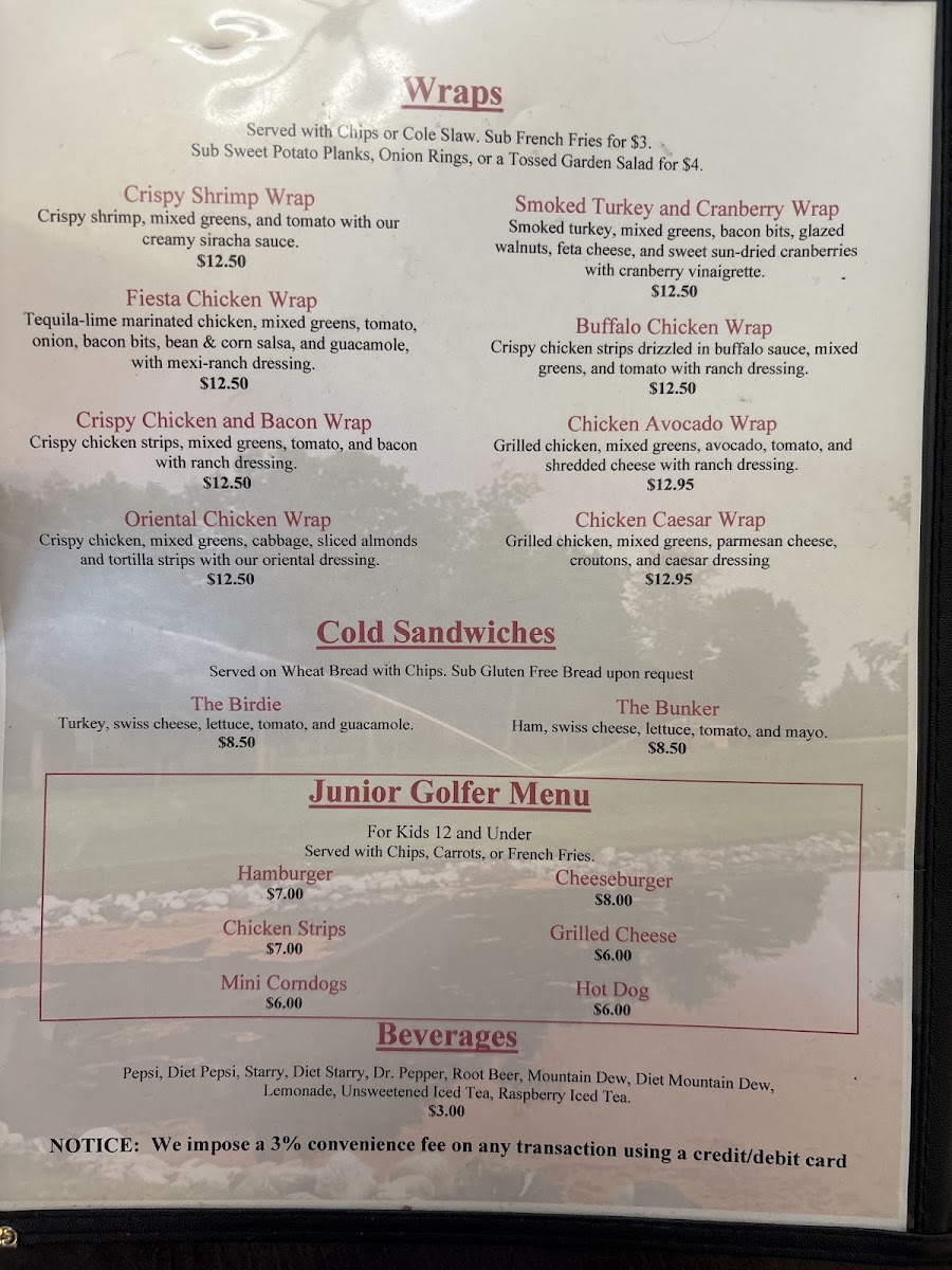 “ Wish I had taken a picture of my delicious shrimp wraps. So many options on the menu, I couldn't decide. Beautiful view of the lake. Golf course, but no membership required to eat. Staff couldn't have been nicer. Lovely young hostesses smiling when you walk in, very willing and interesting conversation with another lovely smiling lady tending the bar, and the kitchen staff fellas even snuck out to help me with food suggestion and local late night activity advice. I absolutely loved my night there, and I cant praise the staff enough! Easily 5 stars, dont be shy go on over there and have a good time. A special mention for the owners daughter tending bar up there. Thank you for a sincere and enthusiastic conversation with an out of towner strolling in on a weekday closing hour. I will start watching the sandman. ”