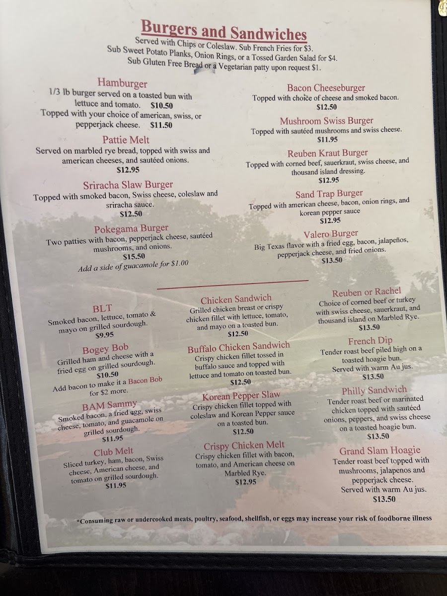 “ Patio overlooking the course and lake was really nice. Wife and I each had burgers. They were pretty good. Service was very good as well not real busy, but I was Sunday evening around 7:00. ”